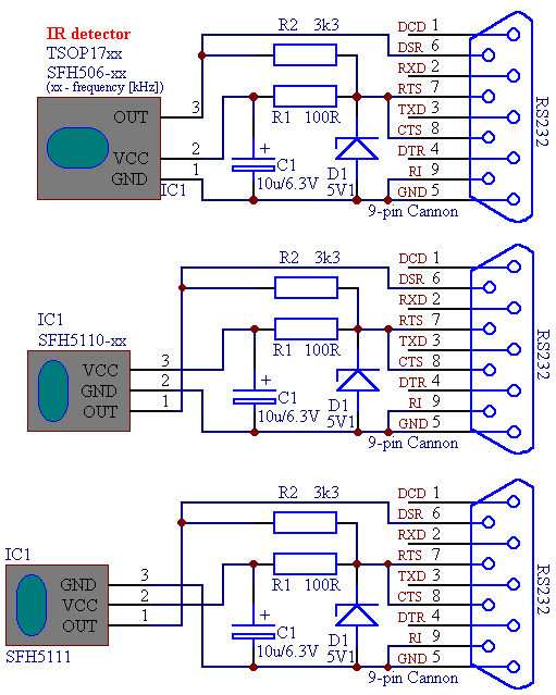 TSOP1836, IS1U60L, GP1U52X, SFH506-36, TK1833.