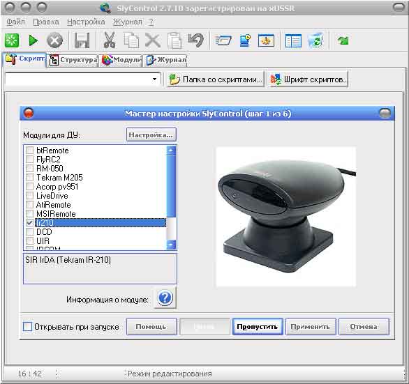 появляется Мастер настройки, и мы выбираем наш плагин пульта. Тут я думаю, ничего