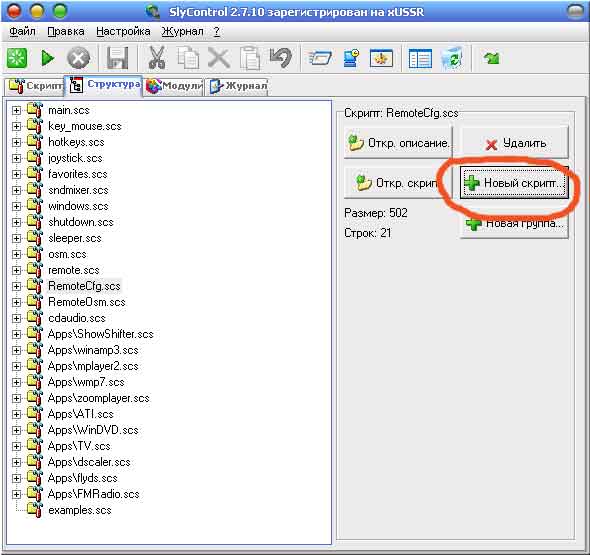 6. Чтобы SlyControl знал вашу программу надо написать скрипт, делается это