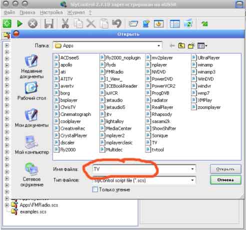 Нажимаем открыть, нас спрашивают "создать файл TV.scs ?", жмём "Создать".